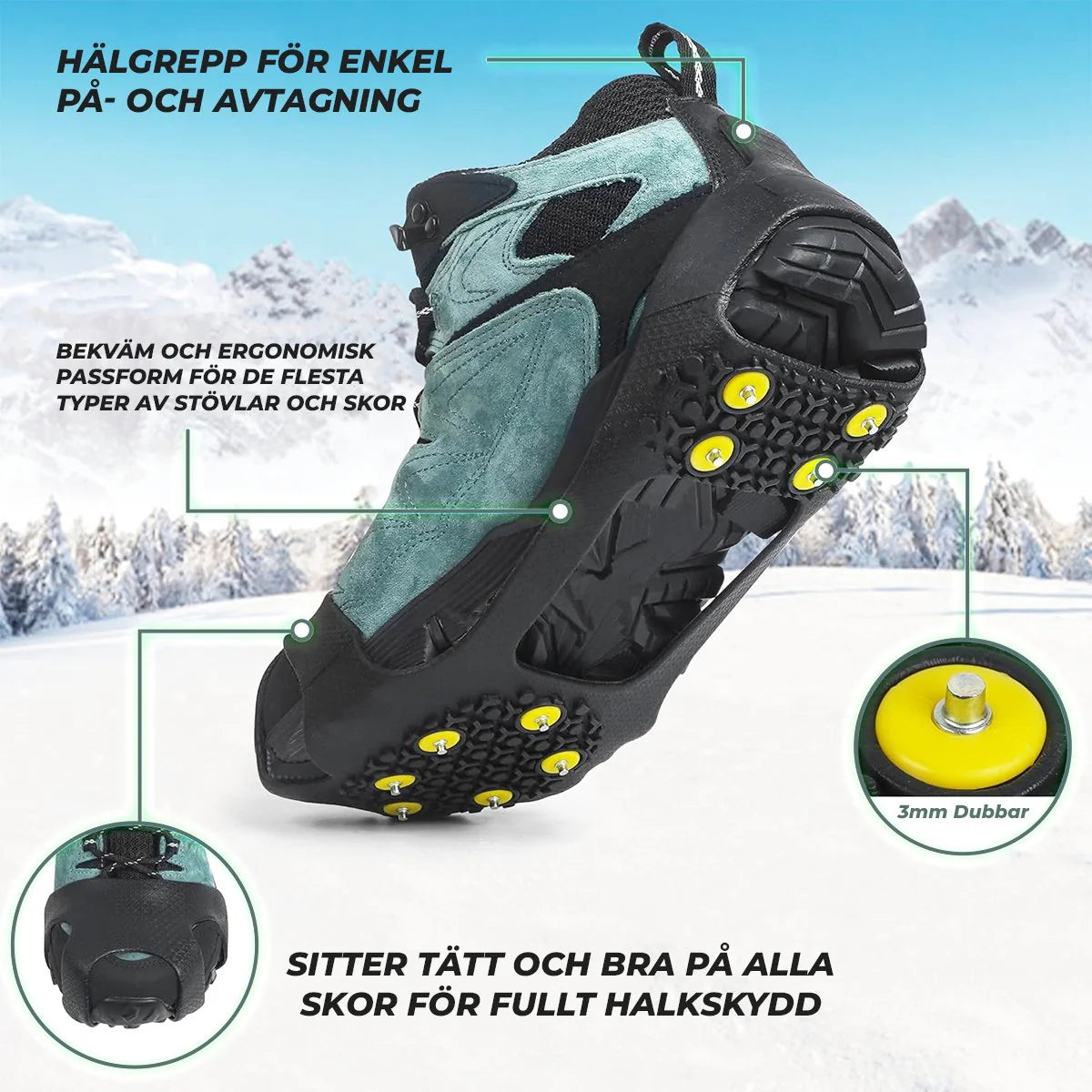 Our anti-slip shoe grips are designed to provide maximum grip and safety on slippery surfaces, whether icy sidewalks or snow-covered paths. With a robust design and durable materials, they are perfect for winter walks, working in urban environments or when you just want to avoid slipping on slippery surfaces.
