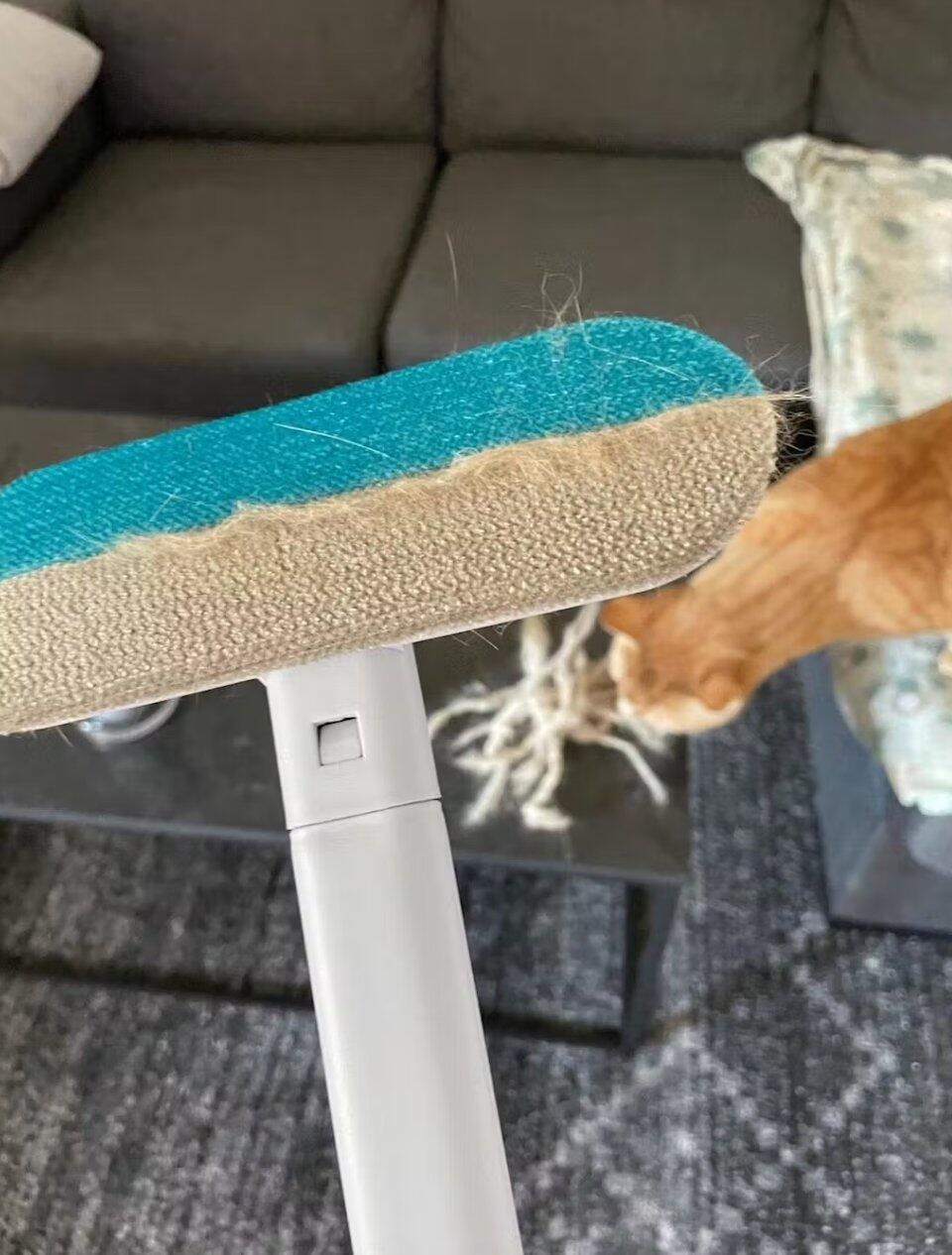 Jag har två långhåriga katter och en golden retriever – ni kan tänka er hur soffan såg ut... Den här pälsborttagaren tog bort allt på några drag. Smidig, återanvändbar och slipper kladdiga tejpremsor...