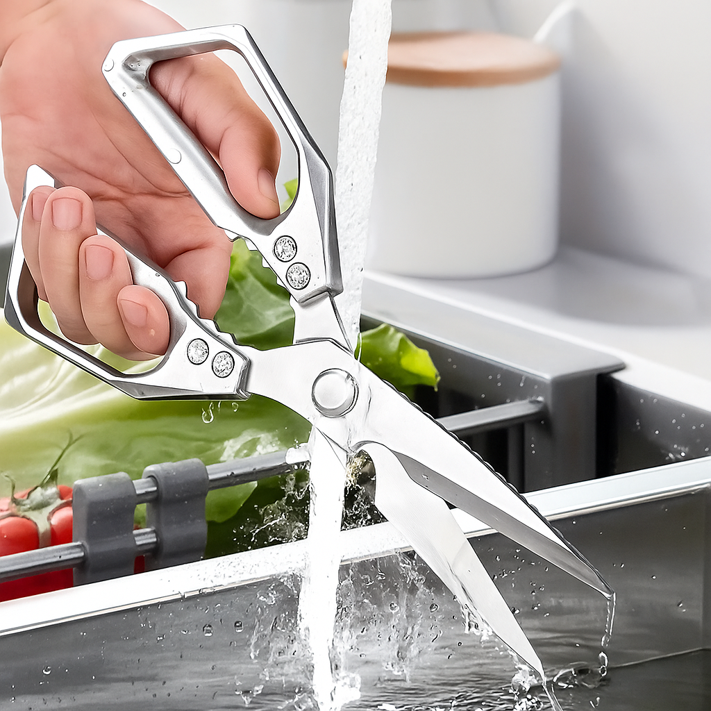 Klippen är den multifunktionella kökssaxen i rostfritt stål som klarar allt – från att klippa kyckling och fiskben till att skära grönsaker, örter och förpackningar.