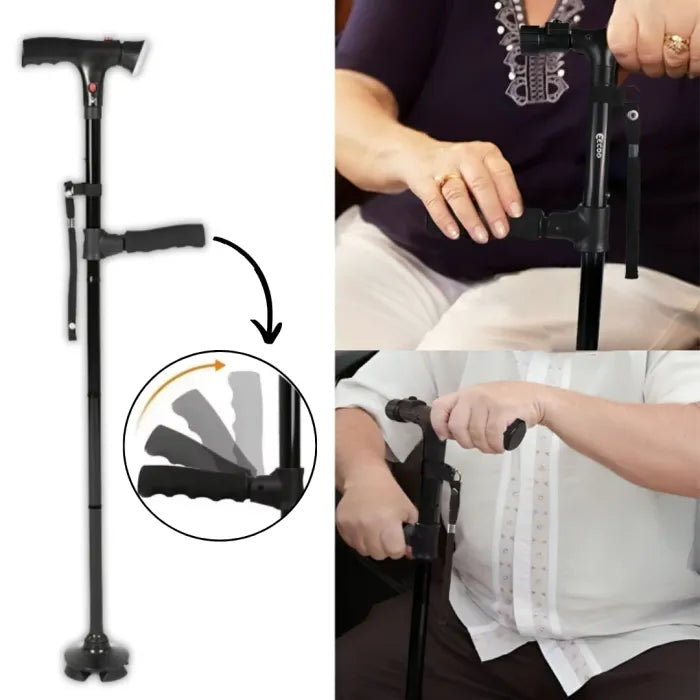 Den här smarta käppen är framtagen för att ge dig stöd där du behöver det som mest – med ett extra handtag för uppresning, inbyggd lampa som lyser upp framför dig och ett nödlarm som kan aktiveras vid behov.