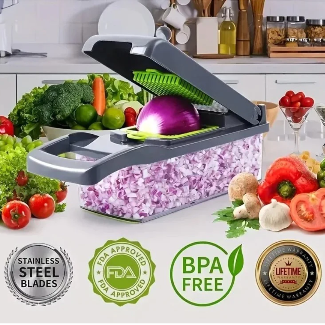 Beställ din 12-i-1 Multifunktionella Grönsakshackare idag och gör matlagningen enklare, snabbare och roligare.