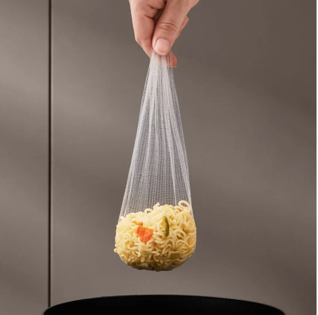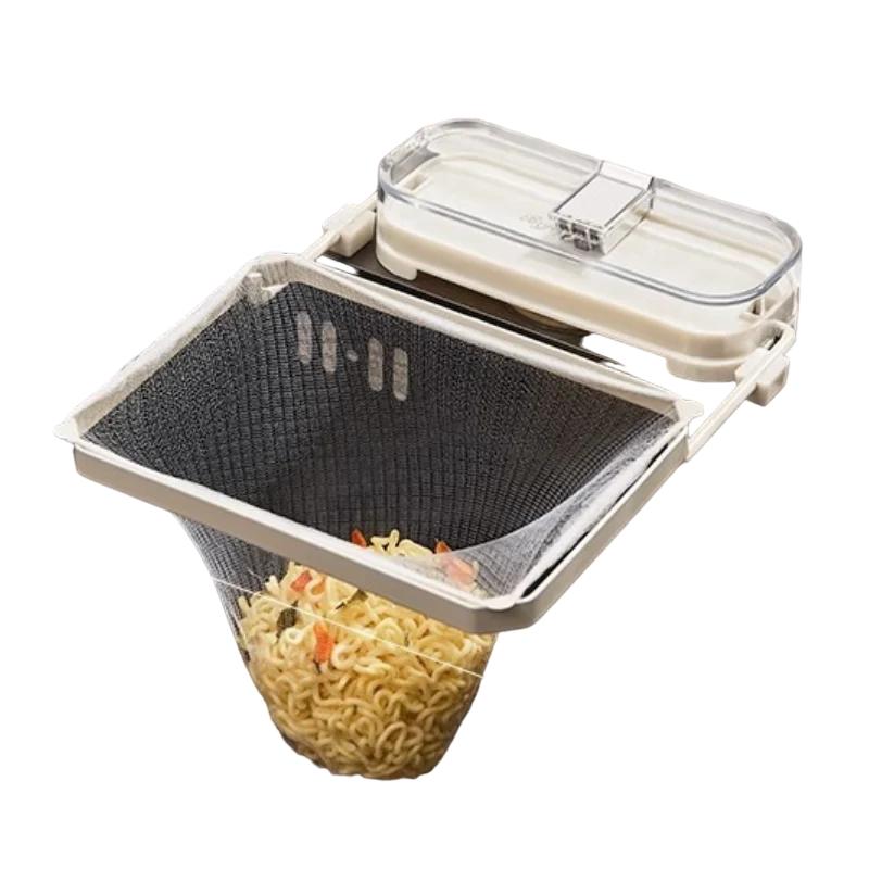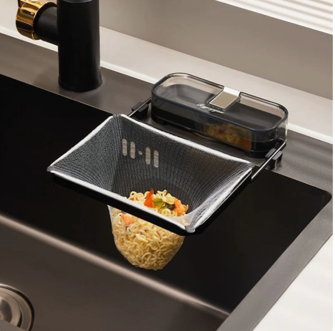 Trekk ned risten og plasser enkelt en nettingpose for å filtrere ut matavfall og væsker. Denne funksjonen hjelper deg med å håndtere avfall effektivt, holde vasken ren og forhindre tilstopping. Kast avfall uten søl. Nettingposen kan også brukes til å sile kraft eller som et alternativ til et dørslag.