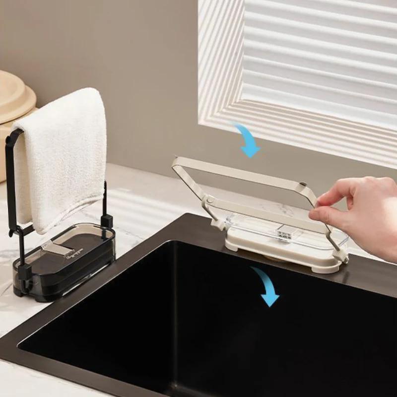 Når silen ikke er i bruk, kan du trekke opp stativet for å lage en praktisk tørkestasjon for duker og oppvaskkluter. Hold tekstilene tørre og friske, rett over vasken.