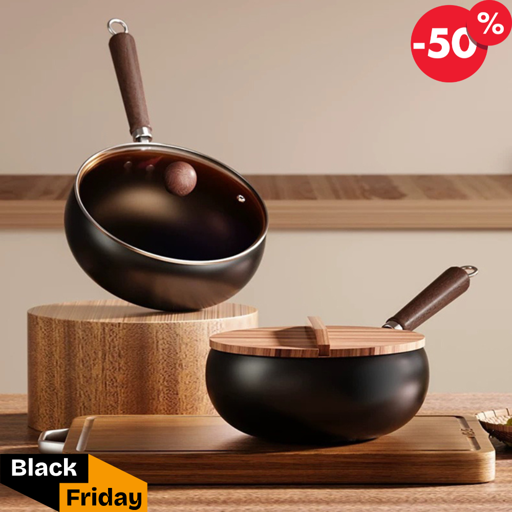 Den extra djupa formen ger mindre stänk och större yta – perfekt för allt från äggröra och pannkakor till kött, grytor och wok. Pannan värms upp snabbt, sparar energi och fungerar på alla spisar – gas, induktion, keramik och el. Det ergonomiska trähandtaget håller sig svalt och ger ett bekvämt grepp som förhöjer matlagningen – med såväl stil som trygghet.