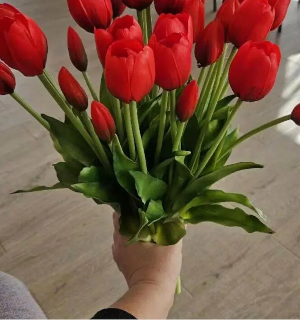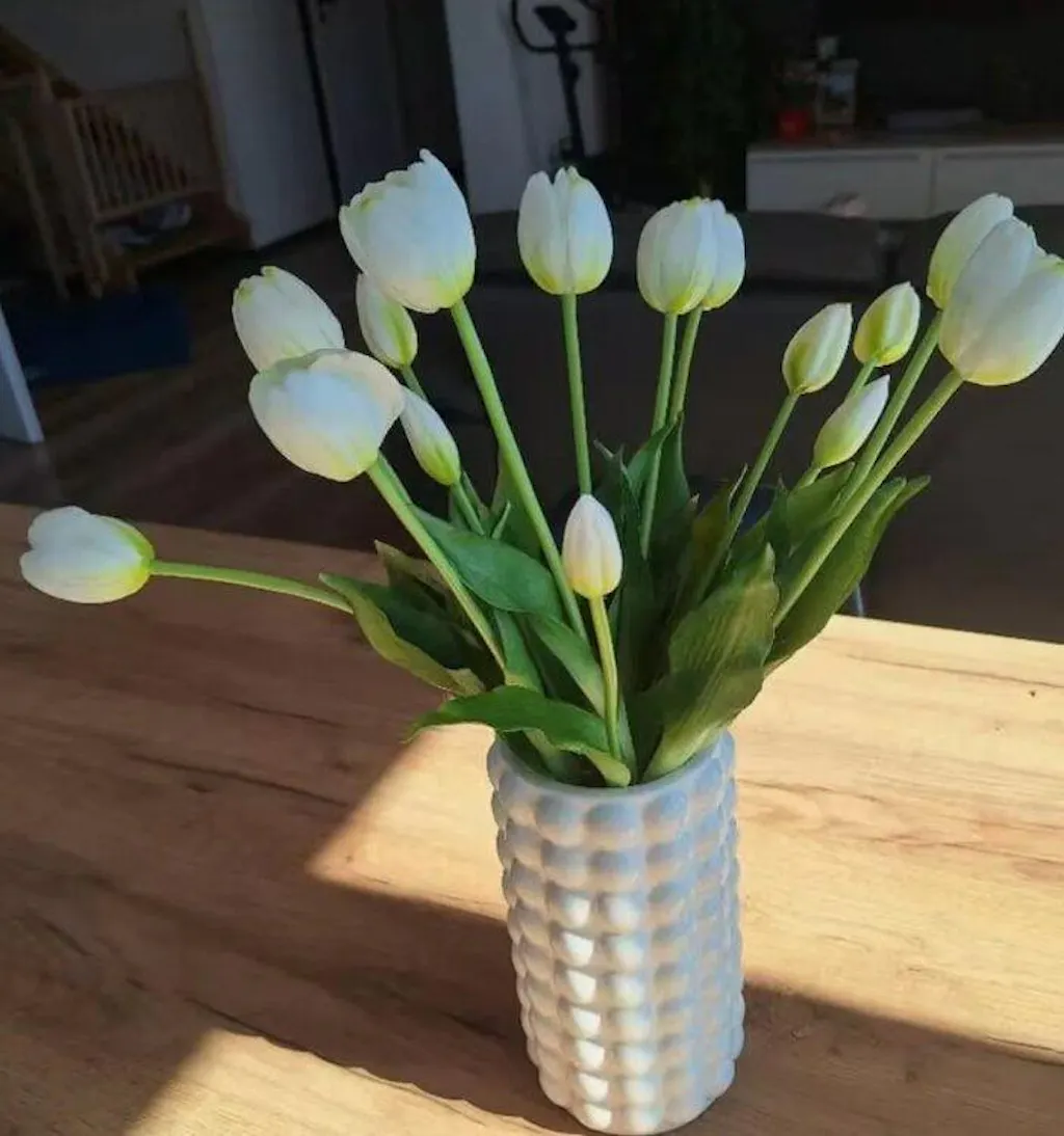 Blombladen är tillverkade i mjukt latexmaterial, vilket ger en så kallad real touch-känsla. Det gör att tulpanerna känns mjuka och naturliga när man rör vid dem – långt ifrån den plastiga känsla många konstblommor annars har.